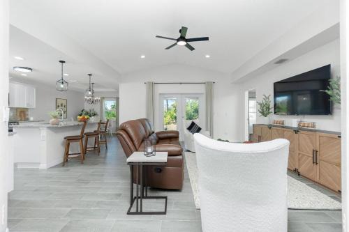 A recently renovated vacation home, Lomas Retreat offers accommodations in Rotonda West. This property offers access to a patio, free private parking, and free Wifi. Outdoor seating is also available at the vacation home. The air-conditioned vacation home consists of 3 bedrooms, a living room, a fully equipped kitchen with a dishwasher and a coffee machine, and 2 bathrooms with a walk-in shower and a hair dryer. Towels and bed linen are available in the vacation home. For added privacy, the accommodation features a private entrance. Guests at Lomas Retreat can enjoy cycling nearby, or make the most of the garden. Fishermen's Village is 21 miles from the accommodation, while Grande Tours Kayak Center is 6 miles from the property. Punta Gorda Airport is 24 miles away.