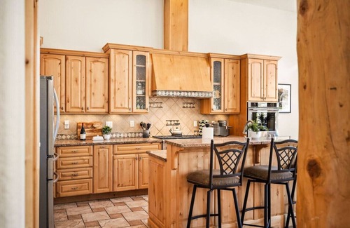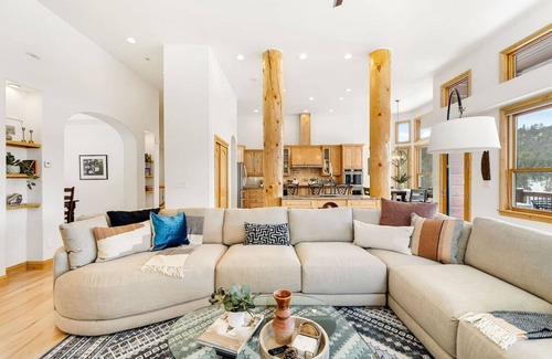 Step into a bright, open space filled with natural light and breathtaking views! Our spacious home features 5 bedrooms, 3 full baths, and 2 half baths, making it ideal for large groups. Each bedroom is equipped with a King Casper mattress, except for the kid-friendly guest suite, which offers a bunk bed with Queen mattresses. Cozy up by the fireplace in both the main living room and the primary suite for a romantic touch on chilly mountain nights. The fully stocked kitchen, two dining areas, and outdoor seating make it perfect for any season. With living rooms on both levels, there’s plenty of room to relax, and the downstairs pool table provides endless entertainment. The kid-friendly bunk room is filled with playful décor, toys, and books, offering a fun space for little ones.