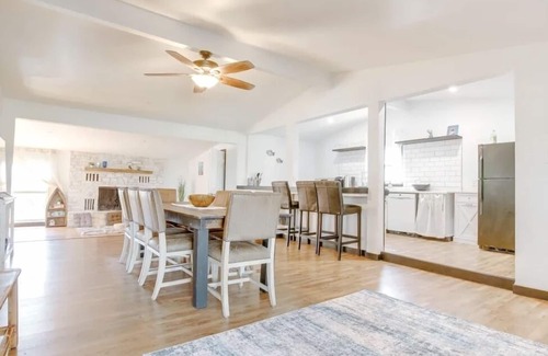 Stunning 5-bedroom home on Lake Buchanan in Burnet, featuring breathtaking lake views, convenient boat parking and ramp access, and a short walk to the lake for swimming. Enjoy added adventure with kayak and fishing pole rentals. Conveniently located, our rental offers proximity to diverse activities like hiking and dining at Canyon of the Eagles, swimming and exploring at Inks lake State Park, mountain biking at Spider Mountain, and events/festivals at Reveille Peak Ranch.