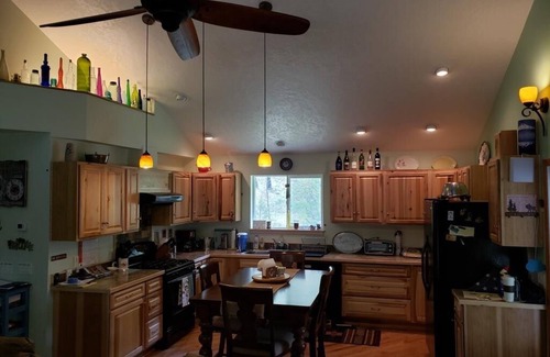 A picnic table is onsite for guest's use. Due to forest fire concerns NO open fires are allowed. Guests have the whole house and fenced yard to themselves. Keypad access is provided to driveway and to the home so guest can check in at their convenience.