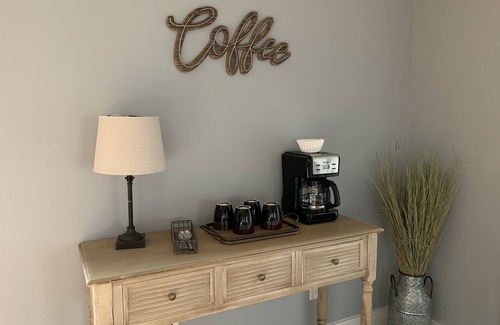 This clean, modern cottage rests in quiet seclusion between historic Dahlonega and Cleveland. Only 12 miles from GA 400, the location is central to everything you’ll want to do and see. It’s located minutes from 10 local wineries, multiple wedding venues and other family activities. Large windows and glass doors provide lots of natural light that brings the outdoors in, all while providing you the latest conveniences and comfort with modern furniture and appliances. Master bedroom contains king size bed and private bathroom. Guest bedroom contains queen size bed and access to full bathroom. Air mattress is provided to accommodate children or two extra guests. Enjoy a fire inside using the gas fireplace or outside at the private fire pit, and we’ll provide the wood! Relax on the back deck with the gas grill or watch wildlife from the comfort of the front porch rocking chairs. Coffee bar and fully equipped kitchen provides all you need if you want to cook. This cottage shares a 5 acre wooded lot with a comparable cottage called LoneBear Cottage #2. Rent one cottage or both for large family gatherings!