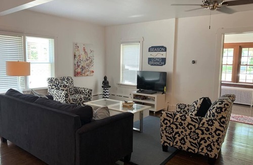 Beautiful and fully furnished hip 3 bedroom, 2 bath home with enclosed porch/sunroom. Open dining room/living room with separate eat-in kitchen. And exquisite backyard with inground pool surrounded by lounge chairs just waiting for you. Covered sitting area in backyard for shade just blocks to Long Branch beaches. Large basement for additional living space or potential additional sleeping. Oversized driveway and 4 car garage for lots of guest parking.