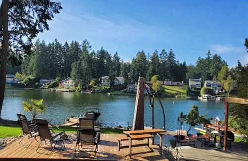 Lake living at its finest! Bring your boat and your family and enjoy a stay or work day from a beautiful lake oasis. A great place for a change in scenery and routine. Wake up to water views right out your bedroom window. New appliances, and attractive furnishings. You will love the atmosphere in this professionally designed space. Watch local wild life from Bald Eagles, and Blue Herons, to catching fish right off the properties dock. Close to downtown Olympia for local dining and amenities.