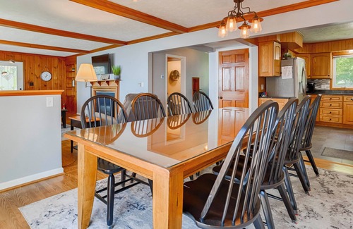 Recently remodeled, this five-bedroom home is boasting with panoramic lake views and all the comforts of home. Inside, custom built cabinetry hug the kitchen walls. Each surface is accented with quartz counter tops, and the perfect glass backsplash is an added luxury. Meal prep is easy when you find the kitchen stocked with all your favorite cooking and baking ware. A trip to the Ithaca Farmers Market, or Sauder's will offer fresh produce that won't disappoint!