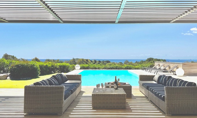 LONGAHOUSES : Heated swimming pool, Panoramic view of the sea and Sardinia | House in Sainte Lucie de Porto Vecchio