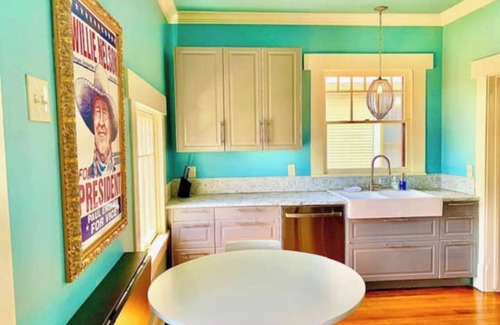 You have complete and private access to your own 3 bedroom, 2 bath home with a large open living room and dining room and over 1,600 square feet of space. The Longhorn Lodge keeps much of its original character and historic charm while incorporating many updated features, including central air & heat, stainless steel appliances and a full size washer & dryer. Enjoy the outdoors with a backyard with a patio and picnic table. Complete with fast WiFi, a 65 inch Smart HD TV, a bluetooth sound system, comfortable mattresses (1 king, 1 queen, 2 twins), high quality linens, soft new towels and all the pots, pans and cooking supplies you'll need to make this your own little oasis - kick off your boots, relax and stay a while at the unique Longhorn Lodge!