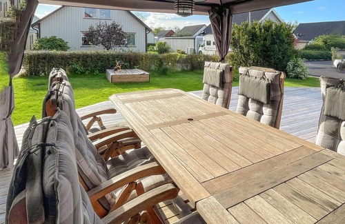 This holiday home invites you to spend active days and is the perfect choice for holidaymakers who prefer a varied holiday. Use this accommodation with its many facilities as an ideal and above all pleasant base. In the bright interior of the house with large windows, you will be welcomed by an interior in a cosy style that will make you feel as comfortable as possible. Make yourself comfortable at one of the dining tables, from which you have a beautiful view of the garden. Perhaps you are planning where to go on tomorrow's excursion. Enjoy pleasant hours on the terrace, where you can find shade and shelter under the garden pavilion with side curtains. Prepare tasty treats on the barbecue while your children happily dig around. There is a playground near the accommodation.