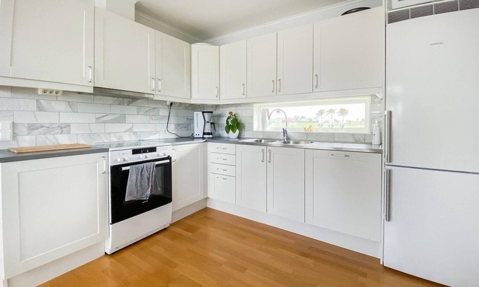 Look forward to this vacation home with large terrace near the sea, golf and town is located in Falkenberg. Look forward to this vacation home with large terrace near the sea, golf and town provides accommodation, featuring TV, View, Security/Safety, among other amenities. This House features TV, View, Security/Safety, to make your stay a comfortable one.