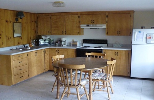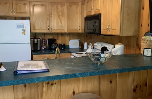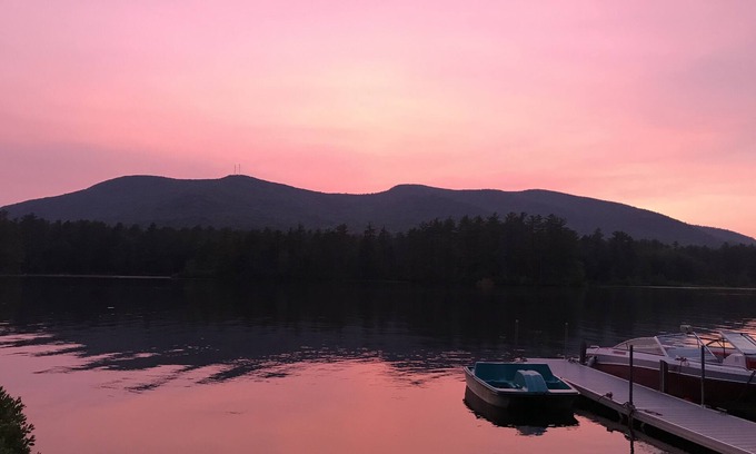 This comfortable, traditional country home is ideal for the families who want to vacation together but also want their own space. The home has the added bonus of having a kitchen, living room, bathroom and bedroom(s) on each level with a spiral staircase that connects the two. There are lots of windows that offer great views of the waterfront and surrounding mountains, as well as awesome sunsets that reflect off the lake. The house comes with 110 feet of private waterfront on Moose Pond and a large lawn area with a picnic table and fire pit. A boat can be launched directly from the property. NON-SMOKING. NO PETS.