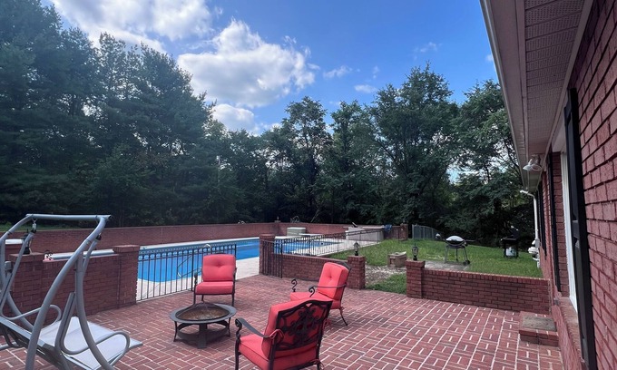 Plenty of free parking, patio w/ fire pit, pool (summer months only). Guest will have access to common areas to include kitchen, family room, dining room areas.