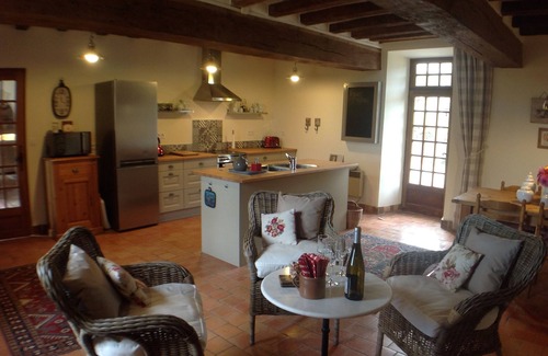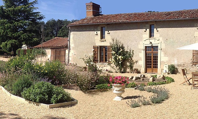 La Marlière is a charming traditional French stone house dating from 1730 set against a sunny and very private garden. Recently renovated to the highest level but still maintaining many of its original features. The house is situated on the edge of the village of Nueil sur Layon in a small commune originally created to serve the adjacent Chateau de la Grise. The village of Nueil is a short walk away and features a small supermarket, bar tabac, pharmacy, doctor’s office, post office, hairdressing salon and, of course, a bakery: can't you just taste those mouthwatering buttery croissants and freshly baked baguettes? The colourful garden is the perfect spot for relaxing with a glass of wine and a book or planning a day out at one of the many nearby attractions. Garden amenities include a stone built barbecue, comfortable seating for 8, deckchairs and umbrellas and outdoor dining table and chairs.Feel free to pick the roses which adorn both sides of the house and help yourself to anything from the abundant herb garden. Decorated with classic French furniture, with an emphasis on comfort, the large Sitting Room features oak beams and a dramatic stone fireplace, comfy sofas and an alternative dining area. A library of books and games is also available together with TV and WiFi. The large open kitchen/dining area features a dining area and sitting area together with all the modern conveniences whilst still adhering to the French philosophy of making this a convivial space where everyone gathers to cook, eat or just relax with a glass of wine.