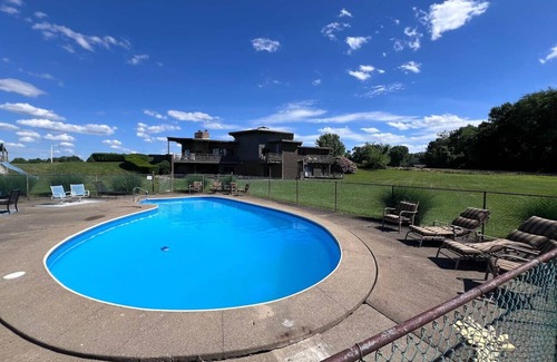 Lookout Lodge 360 is located in the countryside in Dover, Ohio with a 360 views of the beautiful rolling hills and farmland. There are spectacular sunset and sunrise views. Enjoy the private pool just for your group End of May to sometimes October. It is a perfect spot for large groups, wedding guests, or groups of family or friends to have a relaxing retreat. You can sit on one of the many patios and relax with the amazing views. Also an added feature of a sauna off the master bathroom.