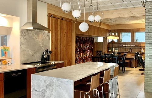 Open kitchen floor plan, natural light, and four bedrooms to comfortably accommodate up to 6 guests.