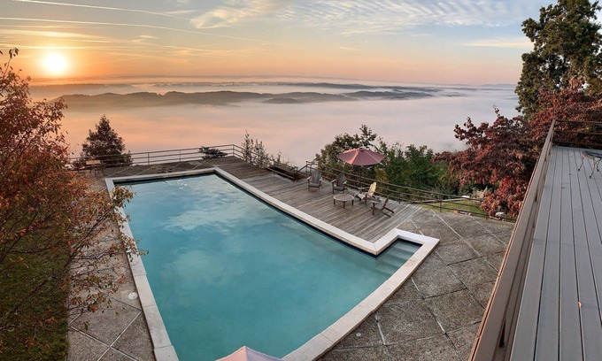Outdoor fire pit, two indoor wood burning fireplaces, a bluff side pool, and outdoor seating to enjoy the beautiful views & singing birds.