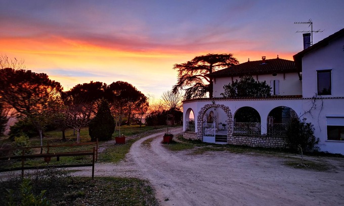 Perched atop its hill, the cottage "Twilight" will offer an incomparable view over the surrounding countryside and the village of Courrensan. Quietly installed on your terrace, you can enjoy the show that will give you the sun Gers.