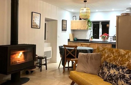 Independent house completely renovated, in the heart of the small village of Aydius, on the height. Beautiful point of view on the Pic du Bergon and beautiful landscapes of this valley of the Pyrenees which leads you to Spain by the Col du Somport. Charm of preserved pebbles and restored beams, pleasant and modern decoration. Ground floor : -Living room with kitchen area (induction hob, electric oven, microwave, fridge-freezer, dishwasher). -Living room (wood stove, TV) -1 bedroom (1 bed 160) with its adjoining bathroom (shower, basin) and opening onto a private terrace -1 separate WC -1 utility room (washing machine) Stage : -1 bedroom (1 bed 140) -1 bedroom (2 trundle beds 80) -1 bathroom with wc Basement of 40 m2 available to store your mountain belongings (skis, shoes, boots, fishing rods...). OFFERED FOR YOUR ARRIVAL: a basket filled with local products and the owners' farm. BEDS MADE for your arrival included. Wood stove (WOOD PROVIDED INCLUDED). Electric heating in supplement. Possibility to rent towels. Cleaning option/deposit 60 euros. High-performance thermal insulation (low loads to be expected in winter - the wood stove is enough on its own, the electric convectors will be little used). Enclosed grounds, 2 terraces facing East on the front and West on the bedroom at the back. Garden furniture, plancha, parasol. Marked hikes from the gîte. To discover a pearl of beauty: the Montagnon lake, in the shape of a heart, symbol of this Aspe valley (start of the hike from Aydius). Cazaubon district, below the village: goat farms, cheese sales - Trout fishing in the Gabarret.
