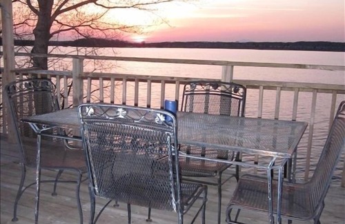 Recently renovated 1st floor, kitchen & bathroom. Expansive lake view with exquisite sunsets are yours for the taking. Peek at the lake from every window direction, face the lake from the deck (like on a boat, and could step out into the water) and just a few steps below will take you to a private stationary dock, where boats can be parked. A few steps up off the upper deck will lead you to perfect views of the July 4th holiday fireworks from Saunders Parkway Marina. Brand new upgrade features a double mini-split ductless heat pump system provides clean, efficient AC, and heat. Please note: Vacation rental guests do bring their own Bed linens and Towels.