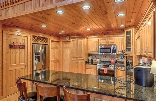 Kitchen - fully equipped main level kitchen, stainless steel appliances, oven, custom cabinets, granite countertops, breakfast bar seats 4, kitchen utensils, microwave, toaster, Keurig
