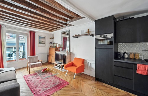 Enjoy staying in the heart of Paris’s Montorgueil Quarter area with this lovely 1-bedroom, 35 square meters apartment located on the 5th floor of a secure residential building WITHOUT an elevator. Self check-in starting from 3:00PM by picking up keys at a nearby shop. Wi-Fi is available, great for both work and leisure. A refundable damage deposit is required, in full accordance with platform's policies.