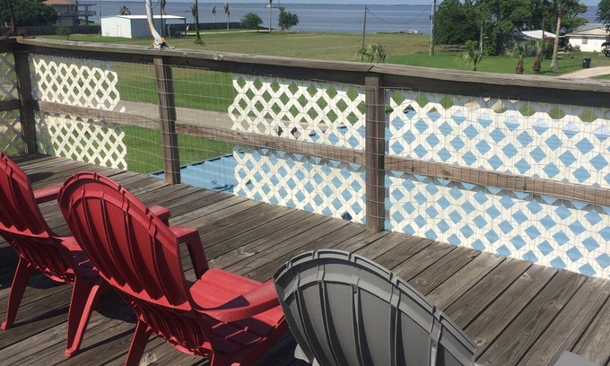 Enjoy the coastal breeze from the covered deck or from our observation deck with spectacular views of Matagorda Bay and the soothing tranquility of the passing barges. Magnolia Beach is a few minutes away, and the new State fishing Pier is bringing in big redfish! Just 12 minutes from town and shopping/ restaurants but this quiet retirement community feels a million miles away. There is a free boat ramp nearby and yes, we have room for your boat. Enjoy a coastal vacation- see you soon!