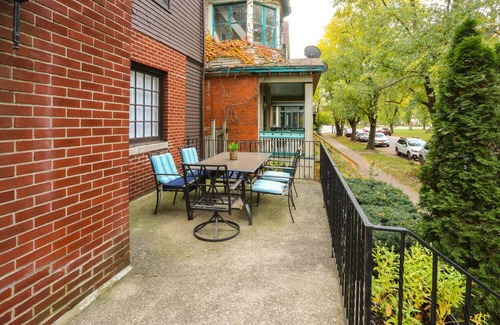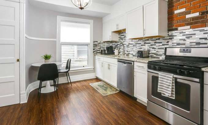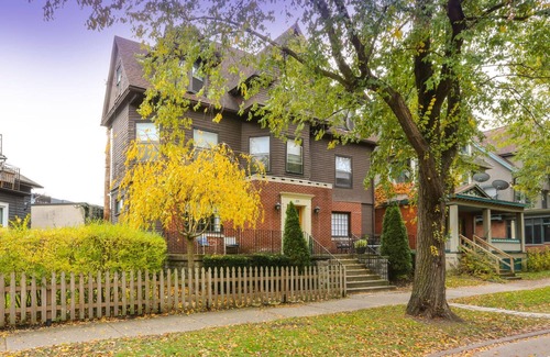 Enjoy a stylish experience at this centrally-located 2 bedroom just steps away from all the activity of the Elmwood Village! This turn of the century victorian boasts vintage hardwoods and tile, a remodeled kitchen with granite countertops and modern accents throughout. You will literally look out your window on Saturdays and see the farmer's market before your eyes! Space ideal for 4 guests, pullout sleeper sofa allows for an accommodation of up to 6 guests.