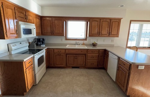 Located in De Pere, this condo is a dream. With 3 bedrooms including 2 king beds, 1 queen bed, and 1 twin bed, guests will have plenty of space to relax. The property offers a peaceful and soothing atmosphere, perfect for unwinding after a day of exploring. Specious kitchen and living room - great for socializing. Enjoy the convenience of amenities like AC, a hair dryer, and an iron. The 3 bathrooms are equipped with showers and hair dryers for added comfort. 2 stall garage with punch code. We're happy to assist with any questions while you stay at our condo.