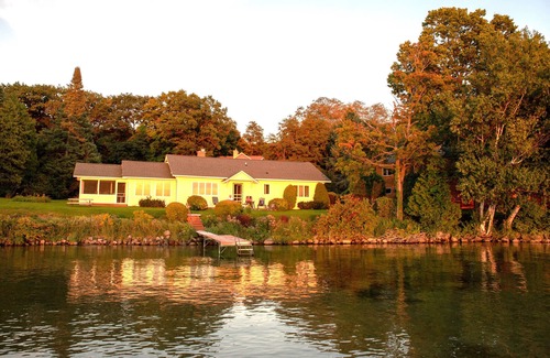 Landscaping is attractive and yard offers plenty of space for picnics, games, sun-bathing, etc. Off-shore/short dock mooring of small boats is available but over-night not encouraged because of the size of the lake. Larger power boats can be launched from conveniently located town dock. Friendly and helpful owners live across the road and reserve the dock and yard area adjacent to the rental home for personal use. Neighbors are considerate. Renters will enjoy the relaxed setting.