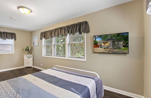 Families and couples will love the modern, clean and light-filled spaces in this cozy home. A roomy and inviting living and kitchen area, comfortable bedrooms, and plenty of outdoor space for playing, dining, and even sunbathing are the highlights of this charming rental. And it’s all just a stone’s throw from the waterways that make up the famous Chain O’ Lakes that this area is famous for.
