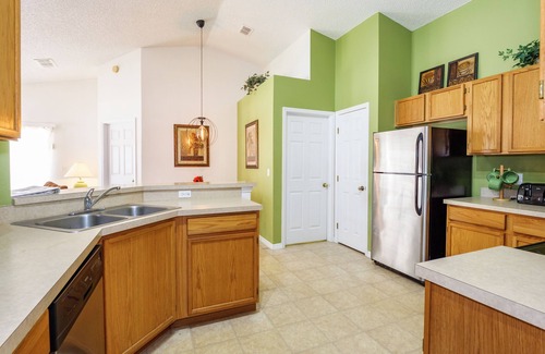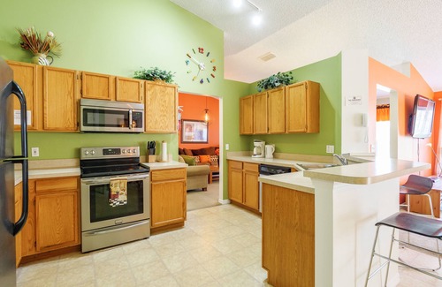 This fabulous 4 bedroom, 3 bathroom, (2 of which are en-suite), fully air-conditioned villa sleeps 10 people with the aid of a sofa bed. It has been beautifully decorated with comfy sofas in the TV lounge as well as the formal lounge, gorgeous bedroom furnishings and window treatments throughout. Our villa is only minutes from Disney and close to all the other major attractions, as well as championship golf courses and wonderful beaches. A great place to relax and unwind after a day at the theme parks.This relaxing getaway is situated on a large corner plot within a conservation area, at Clear Creek. The large pool and spa can be heated for those cooler months and the oversize pool deck has ample sun beds for capturing those Florida rays, as well as a large patio table for alfresco dining under the covered Lanai. There are no rear neighbours, just uninterrupted views of a large natural pond and woodland. Enjoy the free wireless internet, free worldwide phone calls, Games Room, fishing rods, books and games.