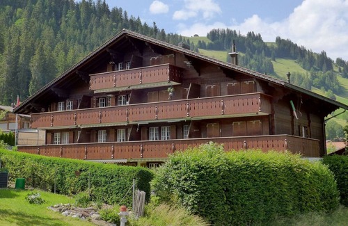Beautiful apartment block, 4 storeys, built in 1989. In a quiet, sunny, elevated position on a slope. In the house: storage room for skis, central heating system. Narrow motor access to the house. Parking at the house. Shop, restaurant 600 m, 10 minute walk to the centre, bus stop 100 m, railway station 850 m, outdoor swimming pool 1.5 km. Golf course (18 hole) 10 km, tennis 1.2 km, walking paths from the house 50 m, gondola lift 1.1 km, skisport facilities 2 km, ski bus stop 100 m, sled run 8 km, cross country ski track 8 km. Nearby attractions: Gstaad, Glacier 3000, Lenk. Well-known ski regions can easily be reached: Rinderberg - Skiwelt Gstaad, Sparenmoos Langlaufparadies. Hiking paths: Naturschutzgebiet Sparenmoos.