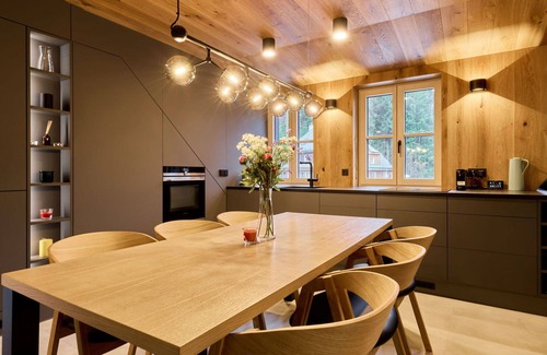 Máj is a modern and luxurious detached residence that has undergone renovation in 2023. It boasts three storeys and is conveniently located in the center of Pec pod Sněžkou, Vrchlabí, Czech Republic. The property offers amenities such as a storage room for skis, central heating system, parking, Internet Wifi, EV Charging Station, and the option for an Installment Plan. It is an ideal vacation rental for those seeking a comfortable stay amidst the beautiful surroundings of Pec pod Sněžkou.