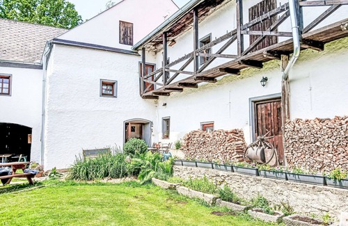 Pension u Řehoutů is a large 18th-century farmhouse located 3 km from Horní Planá in Prachatice, Czech Republic. It offers a beautiful, well-kept garden with a fenced swimming pool (3.5m diameter, 90cm depth, available from June 1 to September 1), a barbecue area, a fireplace, and a planted inner courtyard. The property features a lounge, Wi-Fi, a trampoline, and central heating. Breakfast is available, and a storeroom is provided. Parking is available on-site. Enjoy amenities like the Swimming Pool, Yard, Internet Wifi, and Parking during your vacation rental stay.