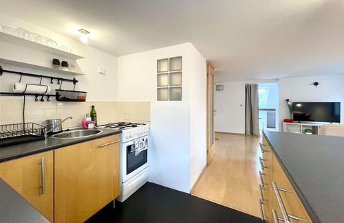 Great attic apartment downtown on the top floor with spectacular views of Prague castle, Old Town rooftops and Petrin hill. Elevator newly installed in February 2020 for your comfort. The apartment has two bedrooms, one with kingsize bed and one with single bed, with additional common room with fully equipped kitchen. This attic apartment was featured in several magazines due to its fantastic location and views.