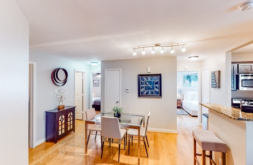 Spread out and kick back in this bright and happy Austin retreat featuring a roomy living space with comfy furniture, Roku TVs in every bedroom, and enough room for up to four guests. Take advantage of the gas range, stainless steel appliances, and counter space in the full kitchen to whip up tonight's family dinner then serve it up on the handsome dining table with glasses of delicious local wine. Be sure to use the free WiFi to download a favorite playlist to your device before heading out for those long strolls along the tree-lined streets.