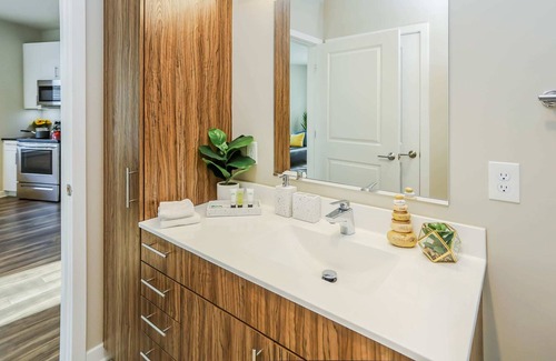 Unwind in the stylish 1-bedroom home in central Fairfax, with a grocery store and a café on-site and numerous shops and eateries within walking distance.