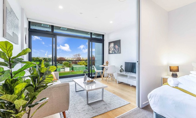 Situated in a new building in Takapuna, ideal for business or leisure travelers. Close to shopping, restaurants, and the beach. Apartment features a kitchen, Smart TV, queen-sized bed, and balcony with pool view. Perfect for a comfortable stay in a vibrant area.