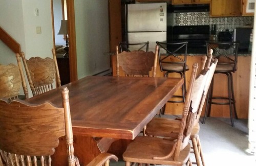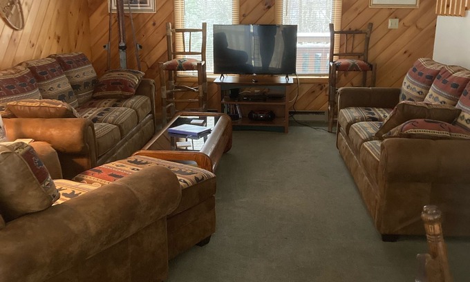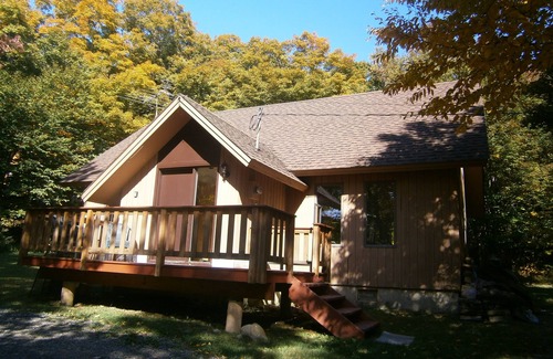 This lovely, spacious chalet is secluded in the Green Mountains of Vermont. It is located at Chimney Hill, a private community. Chimney Hill is a unique community of private homes nestled on a wooded hillside bordered by the Green Mountain National Forest and surrounded by a four-season recreational area. Our Clubhouse is the social center of the community all year round with indoor and outdoor pools, fitness room, hot tub, barbecue facilities, a game room, great room with a projection TV and surround sound, lighted tennis and basketball court. Do you want outdoor activities? We have an ice skating area with lights and a warming hut, four tennis courts, hiking, cross-country skiing, snowmobile trails, stocked fishing pond, and playgrounds for the youngsters. Other activities include golf and tennis tournaments, barbecues, wine tastings, ski racing, and other activities throughout the year, all organized by our superb staff. Our house is within walking distance. to the clubhouse. While there’s plenty to do right on the grounds of Chimney Hill, we also encourage you to explore the Deerfield Valley, and the surrounding areas of Mount Snow and Southern Vermont. You’ll find first-class skiing, championship golf courses, boating, antique and specialty shops, live entertainment, and award-winning restaurants - all within minutes of Chimney Hill. And you won’t find a better place to enjoy the spectacular display of New England fall foliage than from the deck of a Chimney Hill home! The home offers a newly remodeled full kitchen with microwave, toaster, coffee maker, stove/oven, dishwasher, large refrigerator, Washer/Dryer, among other amenities. There is Wi-Fi Internet access, Ruko TV and DVD, CD Player, Movie Library, ski room and a Wood Stove. Outdoors you'll find two decks, grill, and a beautiful grass lawn. There are 3 bedrooms and 2 full bathrooms, plus a loft with a Daybed. The house features all new flooring: wall-to-wall carpeting, tile flooring and vaulted ceilings, skylights. Mt. Snow and Haystack Ski are just ten minutes away. 12-mile-long Lake Whitingham is just 2 miles away with swimming, fishing, boat launch and boat rentals. Downtown Wilmington just 3 miles away with Fine dining, shopping, art, antiquing, general store, supermarket. Also nearby are golfing, hiking, mountain bike trails, factory outlets, and the Marlboro Music Festival. Full Winter Season Rental (Nov - April) $15,000, message me for more information.