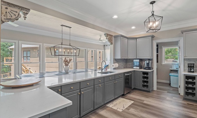 YOUR FAMILY AND FRIENDS WILL LOVE THIS HOUSE and will want to come back again and again! 5 bedroom home with additional sleeping and full kitchen and living area in Guest House. So many different areas to hang out and enjoy the view of the lake! Outside area has a gas grill, TV, couch and chairs, dining area (for 6 people to sit). More seating on side porch. Comfortable fire pit area for nightly s'mores! Conveniently located near Duskin Point Marina and Smith Lake Dam. This house is also 10 minutes to the Gateway grocery store, Ace Hardware, Dollar General, Jacks, Subway, Smoothie / Tea shop and 15-20 minutes to Jasper.