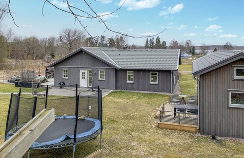 Spend unforgettable days in your comfortable holiday home, which is located not far from the Swedish lake Väringen. The holiday home offers you plenty of space to relax and unwind both inside and out. Start the day with a freshly brewed cup of coffee at the kitchen counter and then prepare a hearty breakfast. From the cosy sofa area, you have a fantastic view of the lake.