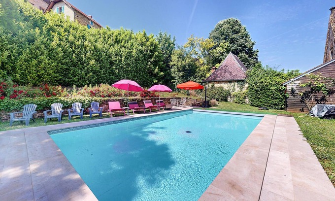 Surrounded by a beautiful garden with swimming pool, this historic vacation home welcomes you to a cozy village.
