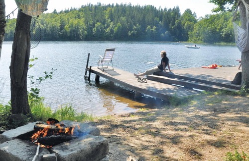 Take advantage of the wide range of leisure activities on site. Hop on one of the three bikes available and explore the wooded surroundings. Fire up the barbecue in the evening and enjoy socialising with the family. Your private paradise awaits just a short distance from the house. An idyllic little lake with rowing boat, canoe and a furnished sun terrace. Treat yourself to relaxation in the rustic wood-fired sauna before taking a refreshing dip from the sandy beach or jetty. The anglers among you can pursue their passion here and at another nearby lake free of charge.