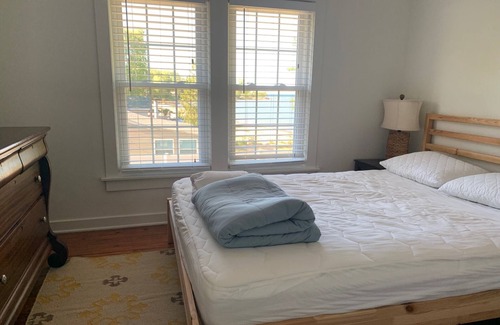 There are 3 bedrooms with queen beds upstairs, one bedroom also has a crib and there is another portable crib available as well. Upstairs there is also a half bath. Downstairs is one bedroom with twin size bunk beds and a pull out twin trundle bed as well. There is a full living room with smart tv and plenty of seating as well as a fully stocked kitchen and full bathroom. There is also a gorgeous three seasons room with a twin sized day bed and pull out trundle. This is the perfect spot to enjoy your morning coffee and watch the sun rise over beautiful Lake Huron.