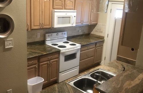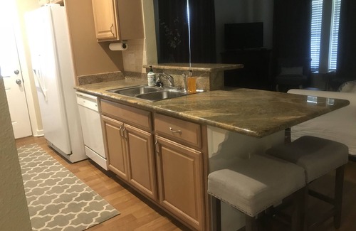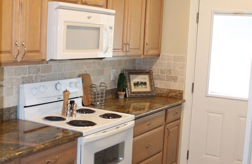 Lovely home sleeps 6 queen bed in master, queen in second bedroom, bunk in 3rd bedroom with double bed on bottom and twin bed on top. Master bedroom has it's on bath.