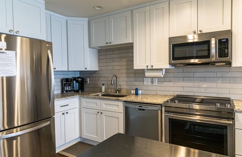 Enjoy cooking in the fully equipped kitchen that overlooks the dining and living room, so everyone can continue great conversation while the meal is being prepared. The kitchen has all the major appliances, including a dishwasher so you'll be able to clean up easily! In the morning, you'll have your choice of a Keurig or traditional coffeemaker to make waking up a bit easier so you can get out to the beach sooner. And for sit-down meals, there's plenty of glasses, plates, silverware, and bowls to set the table for your vacation feasts.