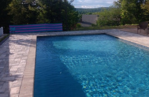 Unwind in Warwick at this marvelous home. This amazing space features a Sylvann swimming pool; scenic deck and backyard welcome. Pets are welcome for an additional fee; inquire. 1 king bed in the cozy master bedroom, a living room; bathroom with tub and shower. Guests can enjoy amenities like hair dryer, AC, WiFi, and a washing machine and dryer during their stay and so much more. Make your holiday one for the books with a stay at our place. Caretakers in home on site with house pet.