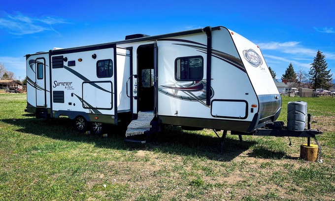 Nestled on the outskirts of Stevensville with a beautiful view of the Bitterroot Mountains, this spacious camper offers many amenities, easily sleeping 4! Walking distance to downtown Stevensville, and about 30 miles south of Missoula, this location offers the best of both worlds. With easy access to fishing and hiking nearby, you'll get to experience all that the Bitterroot has to offer. This travel trailer features 1 queen bed and bunk beds, perfect for a cozy stay. With heating and AC, guests can enjoy a soothing atmosphere no matter the weather. Book now and enjoy everything this fabulous property has to offer.