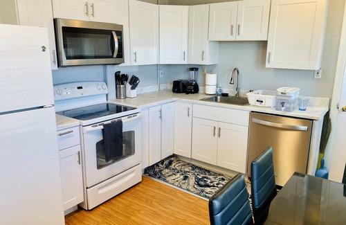 This beach condo is nestled in the heart of Seaside Park, featuring 2 bedrooms, 2 freshly-renovated spa-like bathrooms, and a full kitchen. Its cozy atmosphere is most loved by our guests and gives your romantic weekend, small family getaway, or quiet recharge the perfect blend of comfort and convenience, with the beach and boardwalk just a short stroll away. Begin your day with a morning coffee on the sunlight-filled porch, continue the afternoon with a peaceful bayfront walk with your loved ones, and end the evening with an exploration of all Seaside Heights has to offer you. This hideaway will not disappoint with its comfort, style, and location, wrapping the perfect bow on your memorable beach getaway.