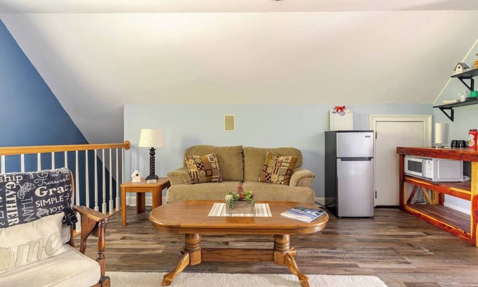 Located above our garage with its own private entrance, this cozy suite combines comfort and privacy:
