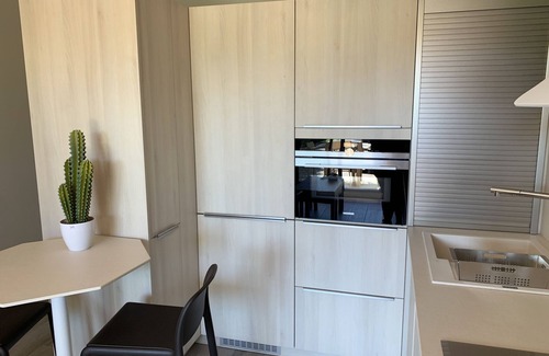 The modern kitchen offers a complete equipment an oven-microwave, induction cooking plates, fridge-freezer, Nespresso and coffee machine, electrical tea-pot, toaster... All necessary cutlery and linen (bed, pillow, shower, kitchen) are provided.