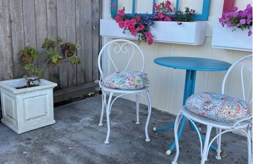 Features a full bath with sumptuous linens, Queen bed with sliding door to a private patio, electric fireplace and tv, internet, and comfy loveseat. Kitchen is fully equipped , seating at a table for 2. Open parking in private driveway. Some grocery staples included , but designed for fixing your own meals, or dining at any of our fine restaurants . Just half mile down the road there is a small organic grocery store featuring local breads, pies, homemade ice cream, fresh milk, cheeses and produce from our local farms . Also some gift items.